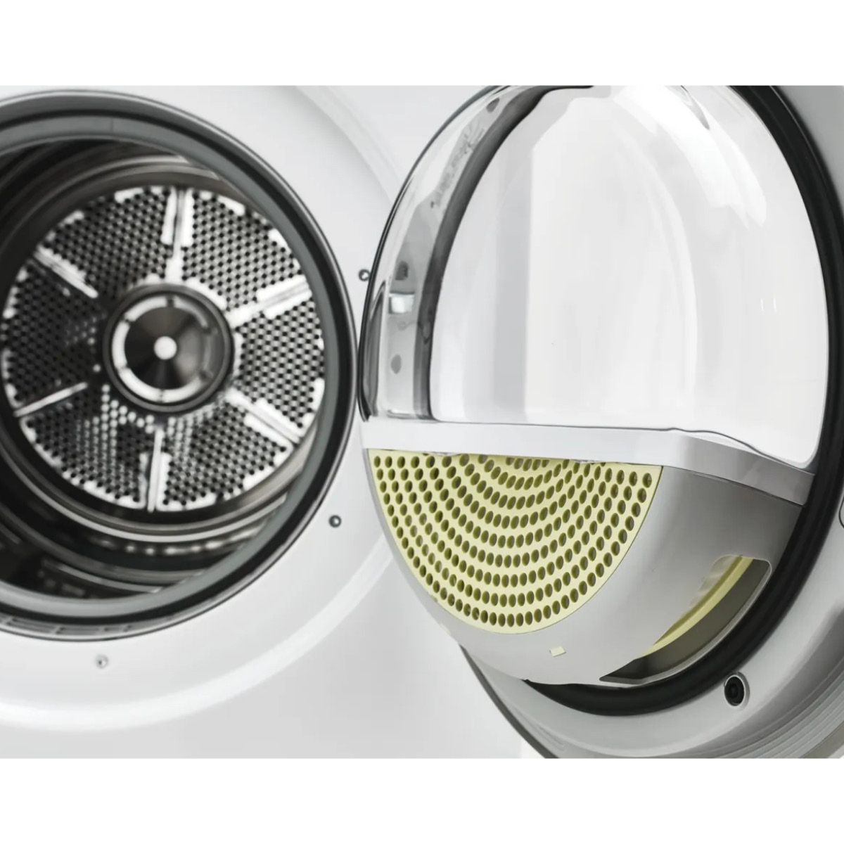 Suszarka ładowana od frontu, biała, ładowność 11 kg, w pełni kolorowy wyświetlacz LCD, 18 programów, zapobieganie zagnieceniom, pompa ciepła, odświeżanie parą, oświetlenie bębna Load Light, klasa energetyczna A++.