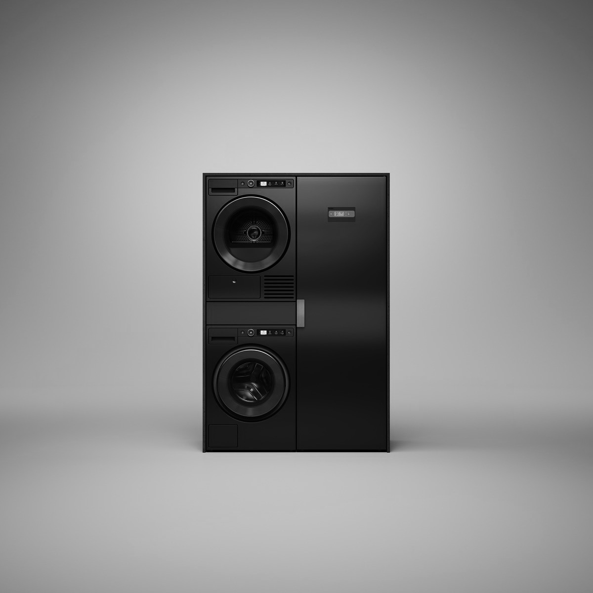 - Wysokość montażu zlicowanego z wieżą pralki, suszarki bębnowej i ukrytego pomocnika