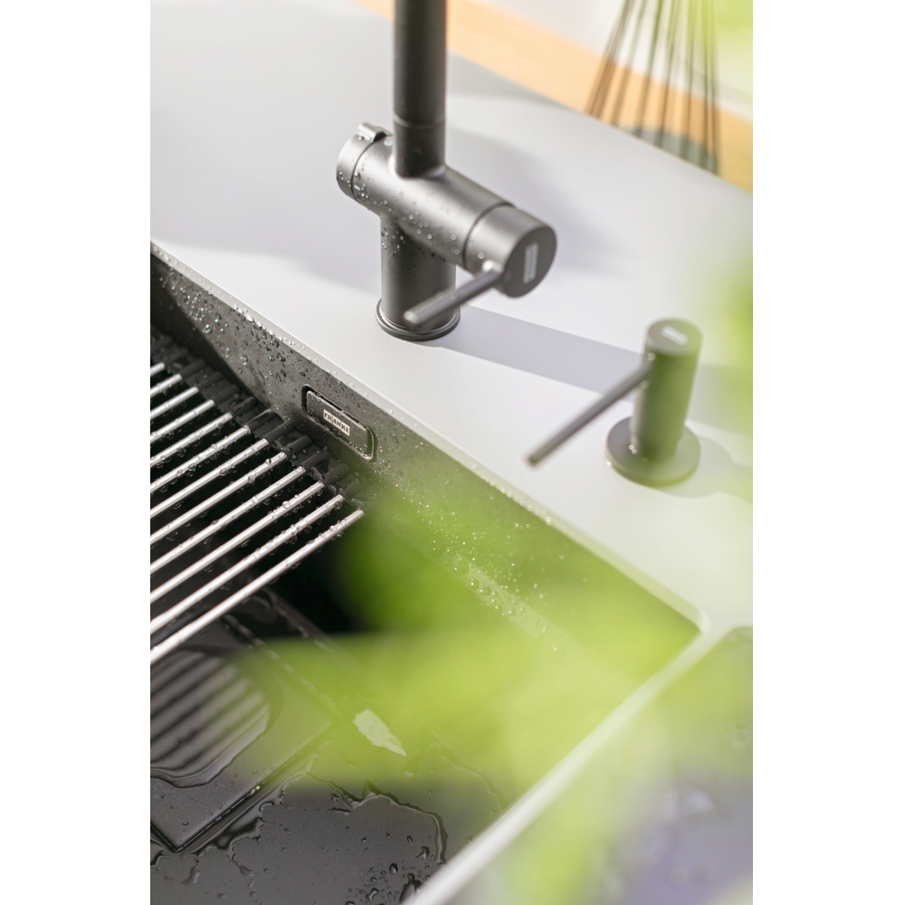 Prostokątny ukryty przelew w kolorze czarny mat do zlewozmywaków KNG. Ukryty przelew jest elementem ozdobnym w zlewozmywakach, ale zapewnia również łatwiejsze czyszczenie.