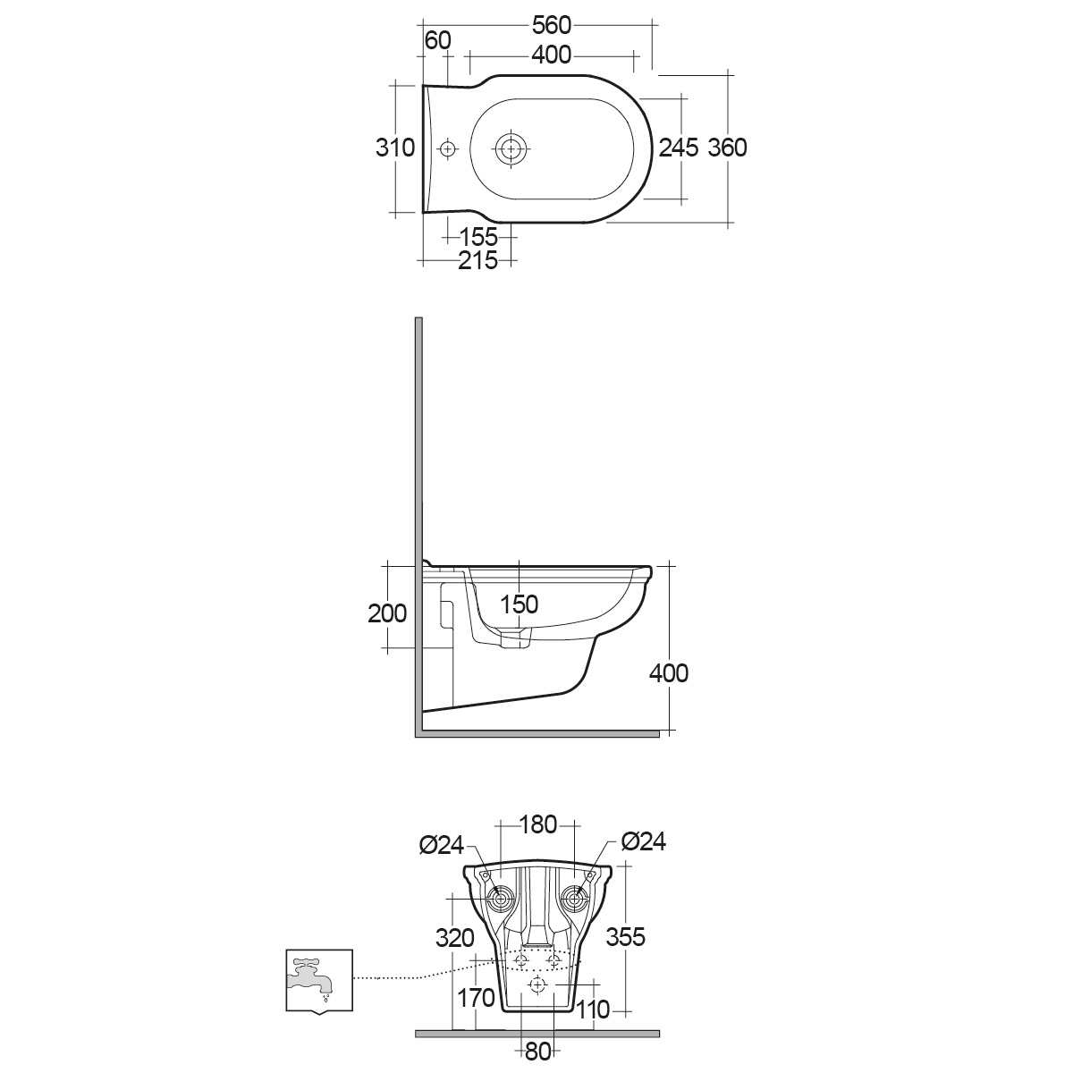 Bidet podwieszany firmy RAK Ceramics z kolekcji WASHINGTON w kolorze biały połysk.