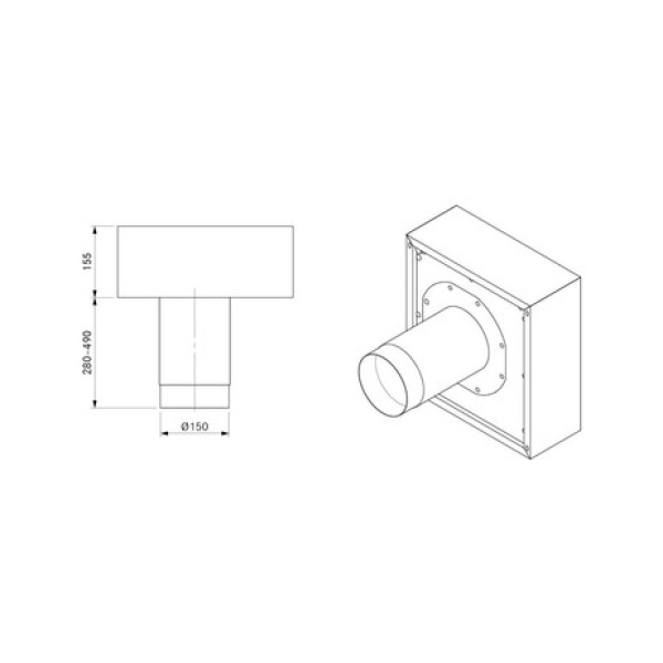 - Jeżeli długość drogi wywiewu przekracza 6 m lub występują duże straty ciśnienia, wentylator ścienny zewnętrzny można uzupełnić o kolejny moduł wentylatora BORA