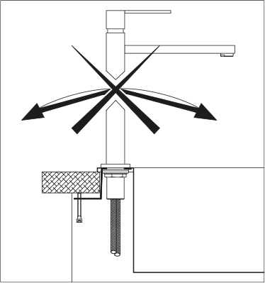Wzmocnienie zalecane przy montażu wysokich baterii w zlewozmywakach stalowych.