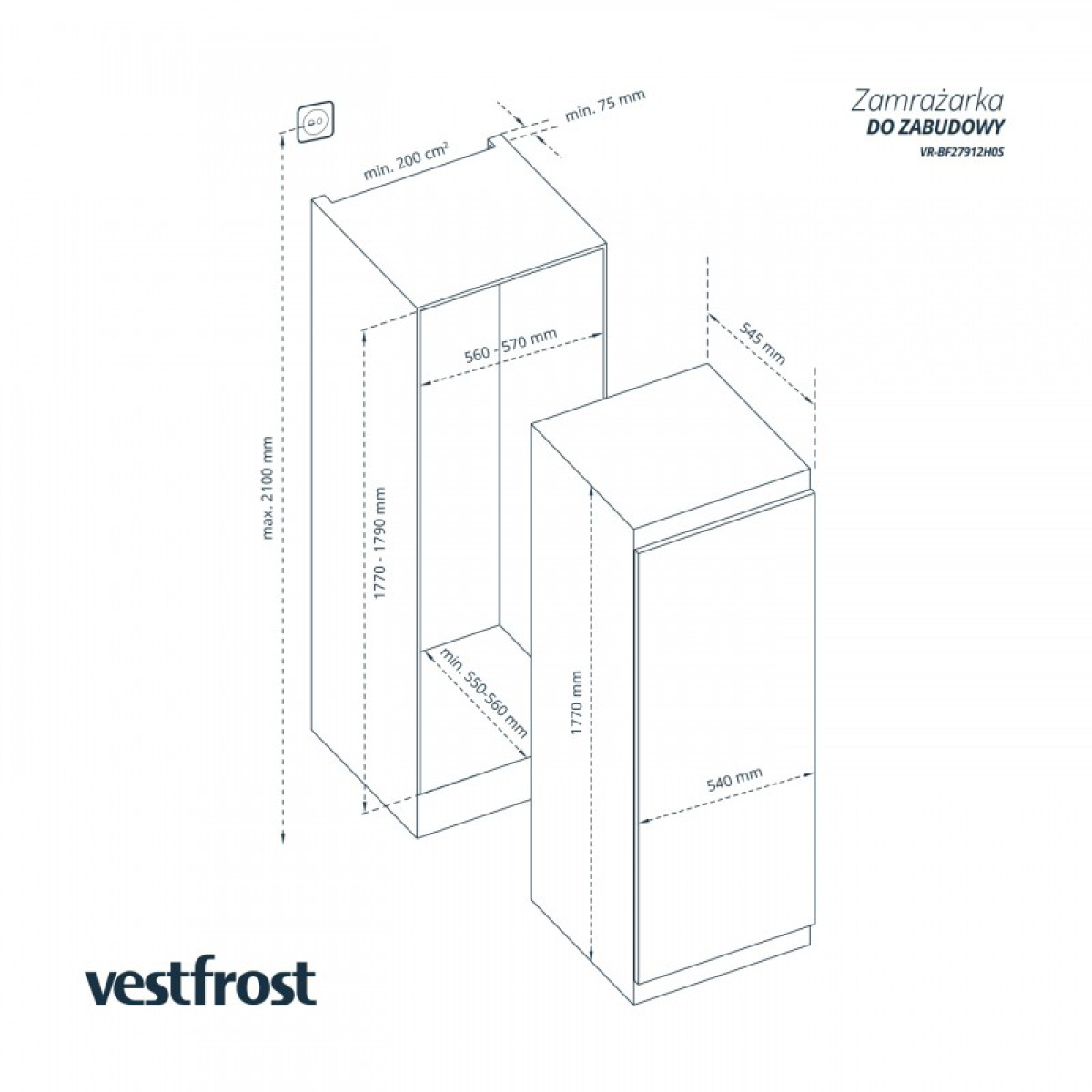 Zamrażarka szufladowa do zabudowy w kolorze białym Vestfrost, NoFrost, kostkarka Twisted Icematic, oświetlenie LED, sterowanie Touch Control, h=177 cm.