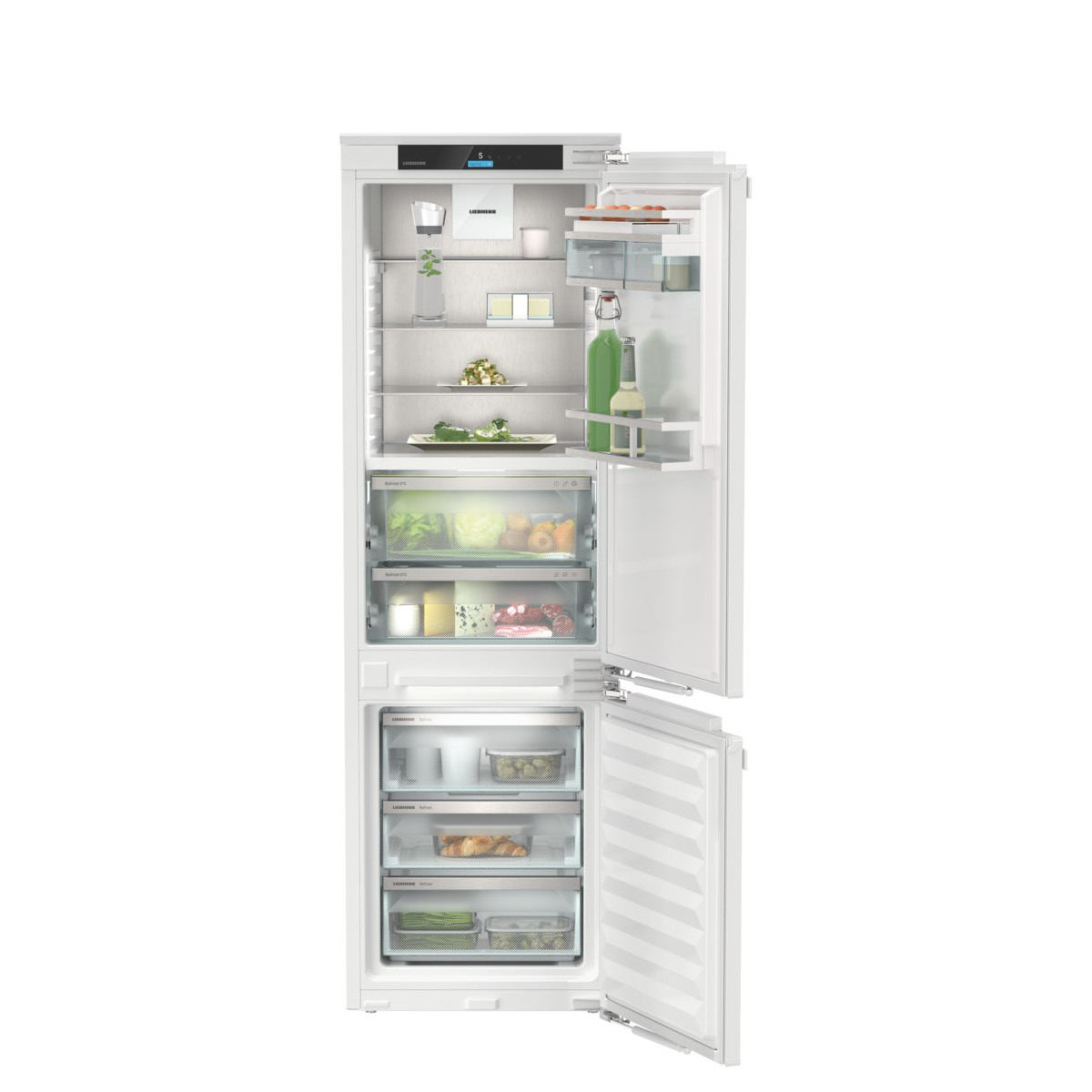 Chłodziarko-zamrażarka z serii PRIME do zintegrowanej zabudowy z technologią EasyFresh i NoFrost oraz modułem SmartDeviceBox w zestawie.