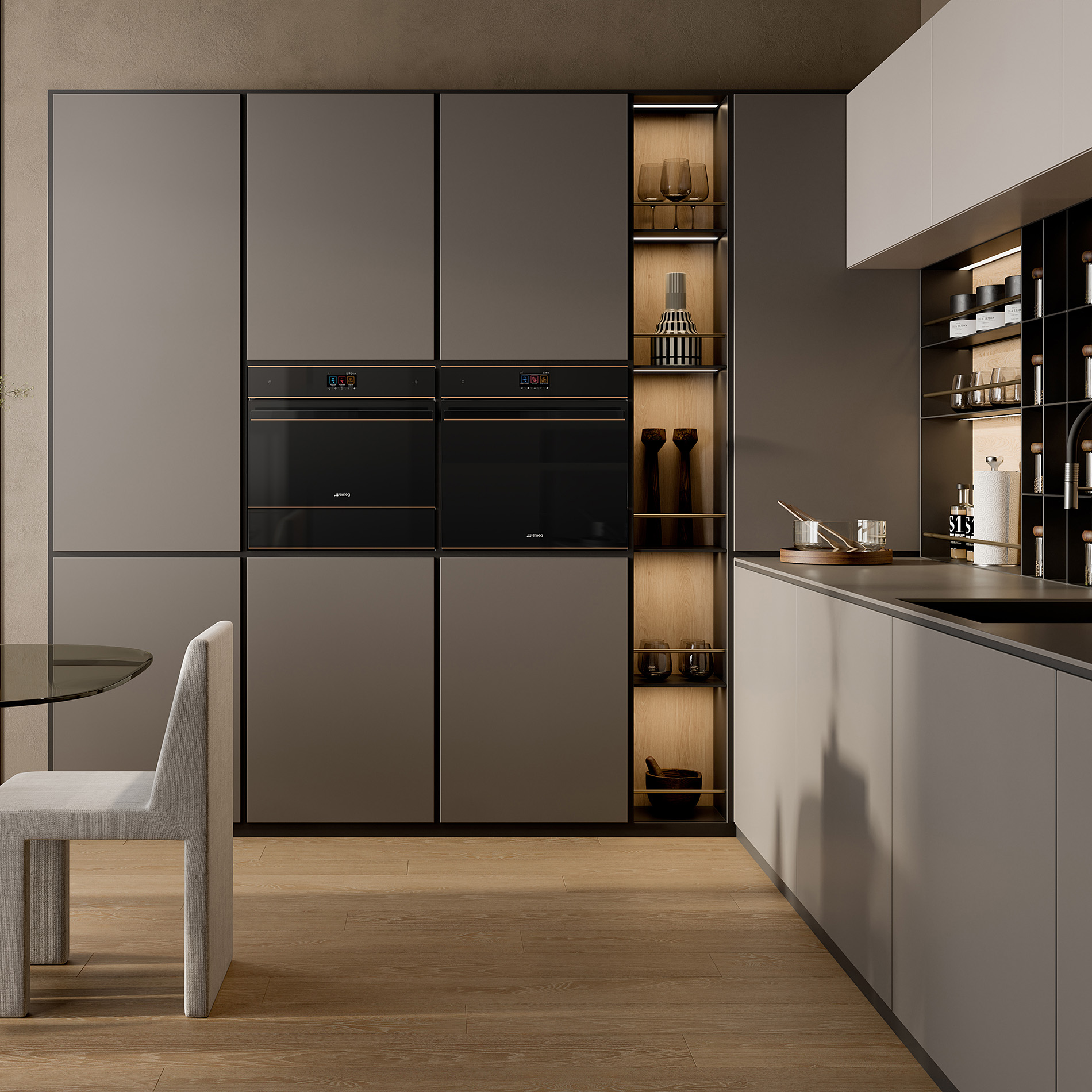 Szuflada grzewcza Smeg z serii Dolce Stil Novo z miedzianym wykończeniem komponentów, dotykowe sterowanie elektroniczne, push-pull, z 5-letnią gwarancją producenta, h=15 cm.