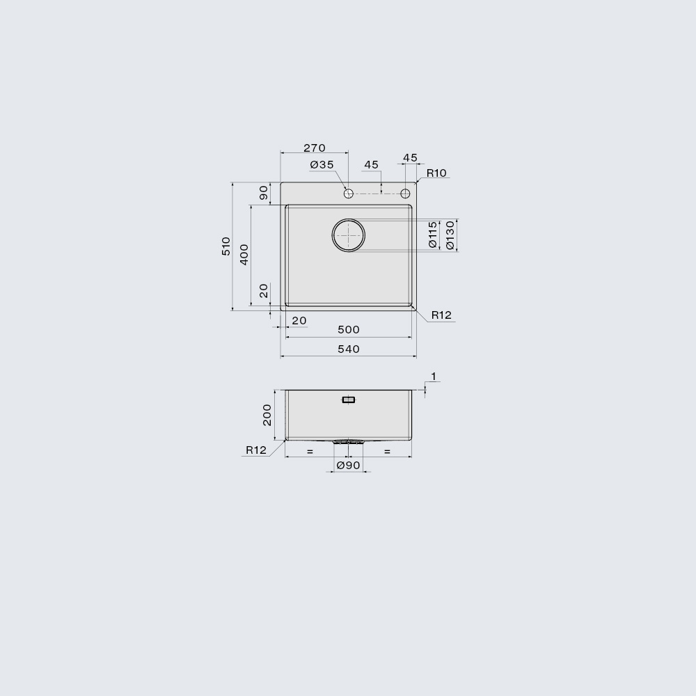 • Wymiary zewnętrzne 540 x 510 mm
