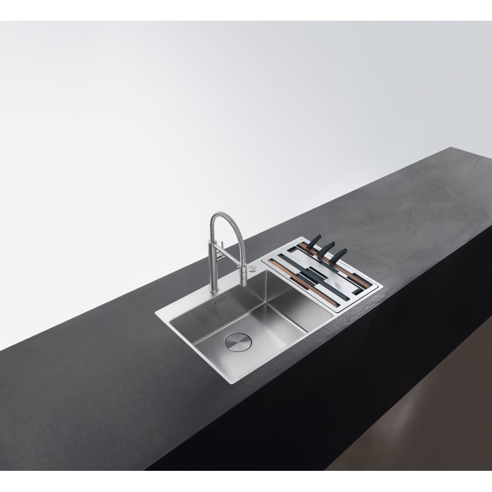 Płaskie krawędzie SlimTop umożliwiają wbudowanie zlewozmywaka w blat lub jego montaż na równi z blatem. Box Center to nowa definicja klasycznego zlewozmywaka, zachowującego swoje tradycyjne funkcje, a zarazem przekształconego w nowoczesne centrum przygotowywania posiłków. Stal szlachetna, z której produkujemy zlewozmywaki FRANKE, to materiał najwyższej jakości i gwarancja odporności na korozję, uszkodzenia, gwałtowne zmiany temperatur i promieniowanie UV. Ten model posiada element estetyczny w postaci osłony odpływu ze stali szlachetnej, która nie ogranicza przepływu wody, a jednocześnie dopełnia komorę, nadając jej jednolity, nowoczesny wygląd.