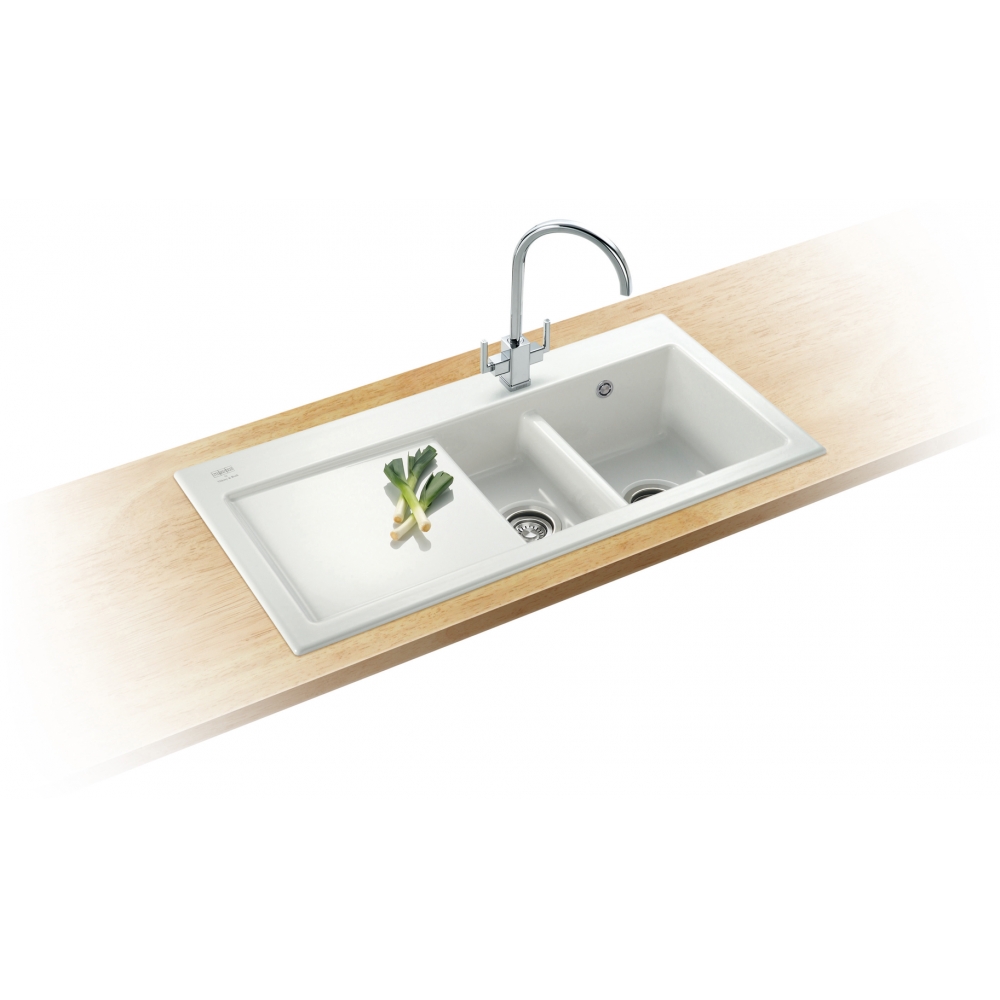 Zlewozmywak wbudowany z materiału Fraceram z ociekaczem po lewej. Naturalne właściwości opatentowanej masy ceramicznej Fraceram sprawiają, że materiał charakteryzuje się najwyższą jakością, odpornością na wysokie temperatury oraz szoki termiczne. Fraceram wykonany jest w 100% z materiałów naturalnych. Idealnie gładka powierzchnia zlewozmywaka ceramicznego sprawia, że jest on higieniczny, odporny na przebarwienia i łatwy w utrzymaniu czystości.