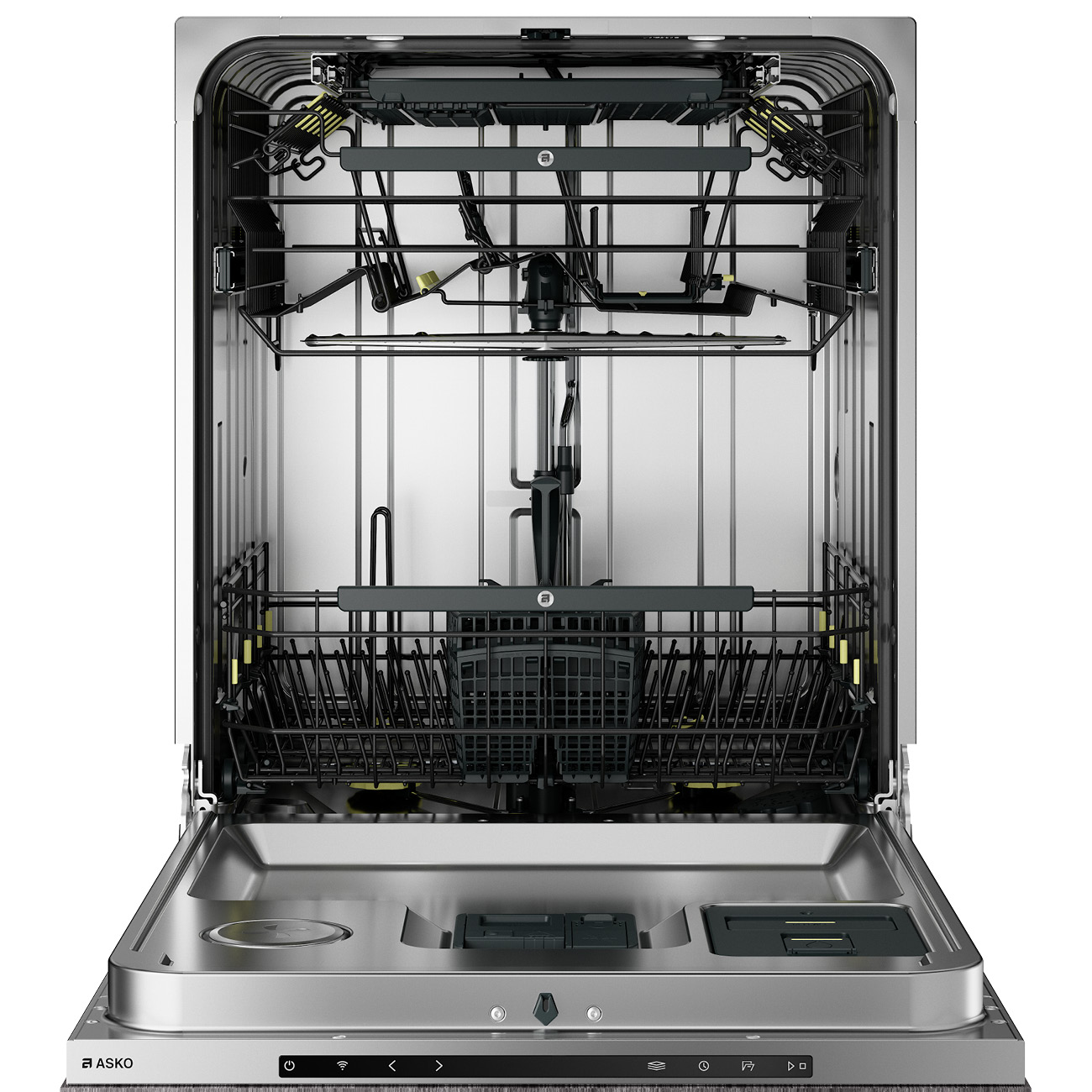 Główne elementy zmywarek ASKO są produkowane z wysokiej jakości stali, a nie z tworzywa sztucznego. Uważamy, że jakość jest najważniejsza i wiemy, że Ty też tak uważasz. Koncepcja 8 Steel™ zawiera: zbiornik z niemagnetycznej stali nierdzewnej, drzwi wewnętrzne z niemagnetycznej stali nierdzewnej,szuflady wykonane z drutów stalowych powlekanych nylonem, ramiona natryskowe z niemagnetycznej stali nierdzewnej, dysze natryskowe z niemagnetycznej stali nierdzewnej, filtr dokładny z niemagnetycznej stali nierdzewnej, podstawa zewnętrzna z jednego litego kawałka stali, nóżki wykonane ze stali z plastikowym zakończeniem, aby ochronić podłogę.