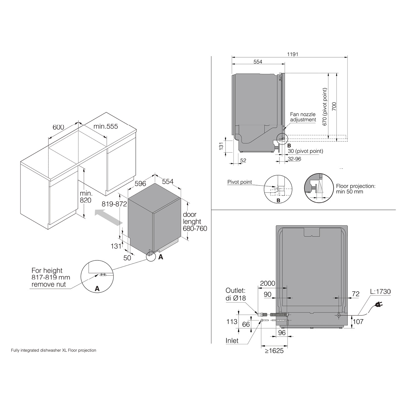 - Minimalna szerokość wnęki: 600 mm