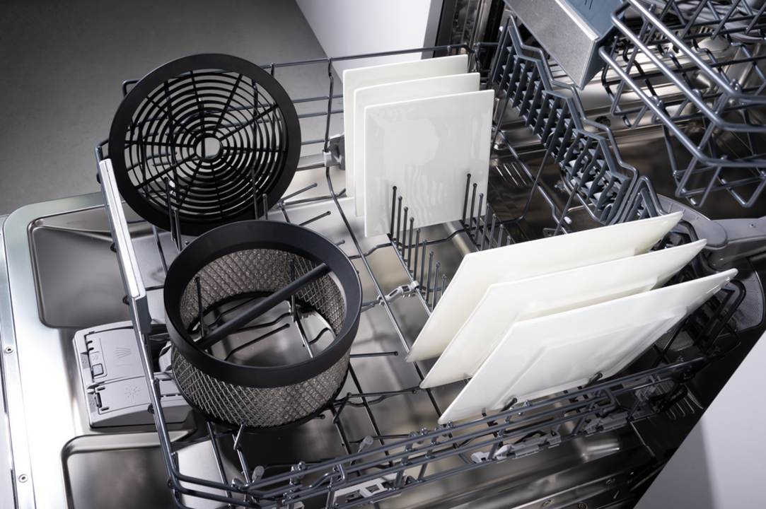 Elementy mające bezpośredni kontakt z oparami powstającymi podczas gotowania można w prosty sposób usunąć przez łatwo dostępny, szeroki otwór wlotowy. Można je myć w zmywarce – zajmują bardzo niewiele miejsca.