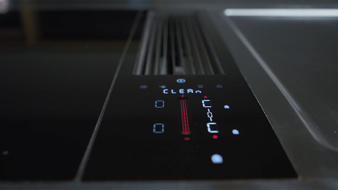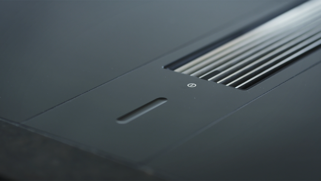 Płyta grzewcza i wyciąg są całkowicie zlicowane. Idealne linie pozwalają na subtelną i wysoce elegancką integrację z każdą nowoczesną architekturą kuchni. Praca w trybie czuwania jest praktycznie niewidoczna i zredukowana do podstawowych czynności niezbędnych podczas pracy dzięki inteligentnemu podświetleniu.
