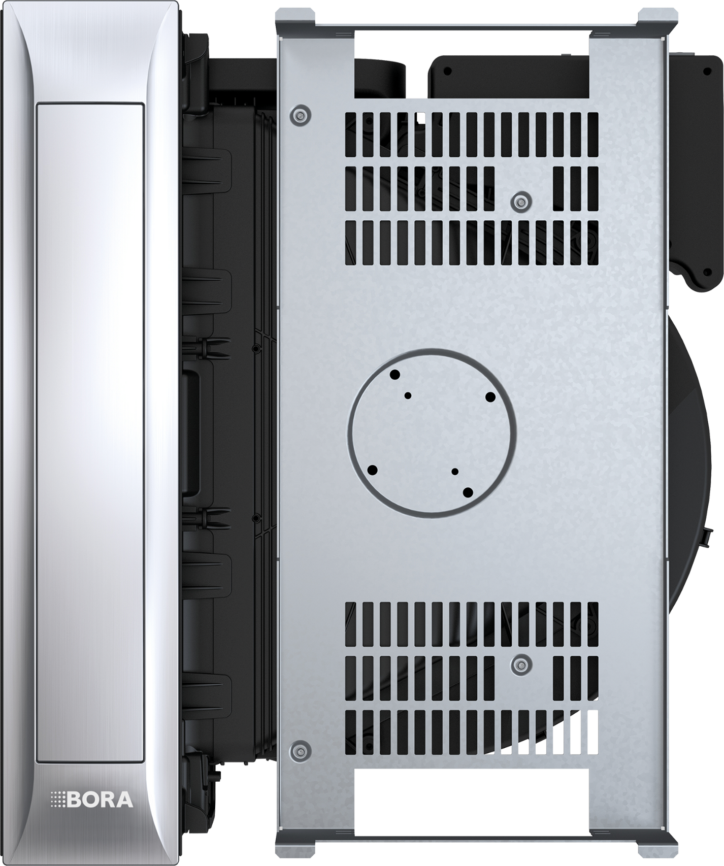 BORA Professional to najwyższej klasy system wyciągu oparów z innowacyjną obsługą pokrętła i indywidualnie wybieranymi płytami grzewczymi.
